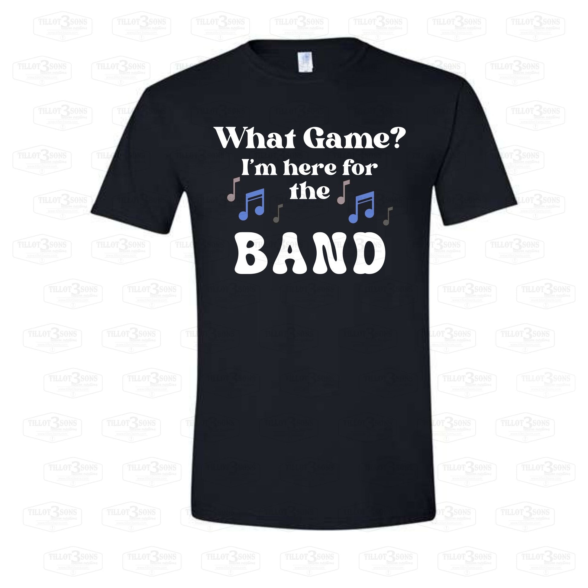 Cheer on your favorite marching band in style with these playful What Game? I'm here for the Band t-shirts.