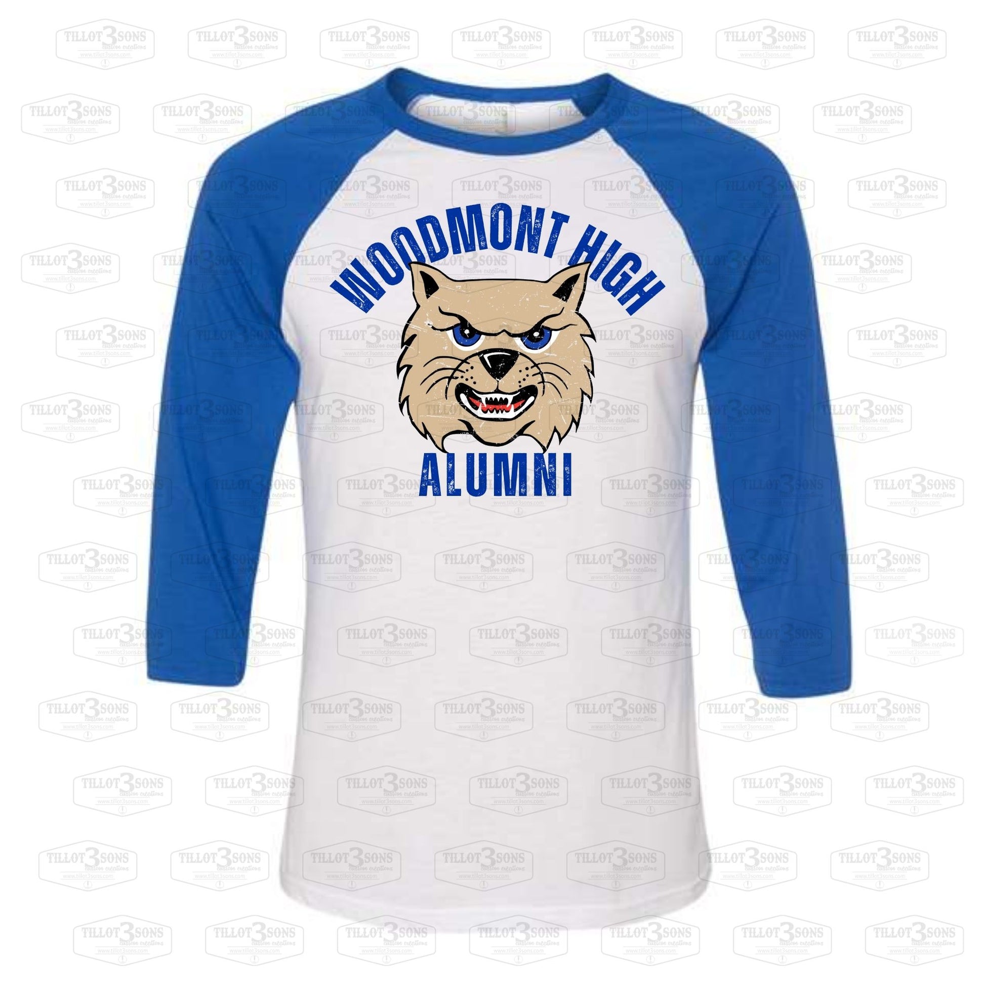 Celebrate your Old School Wildcat Pride with this vintage-style Woodmont Wildcat Alumni baseball tee, short sleeve t-shirt, sweatshirt or hoodie! Showcasing the classic wildcat image from the old Woodmont High School Gym, the design sports a cool, worn-in look on Royal Blue, Sport Gray, or White options.
